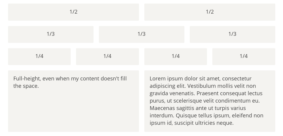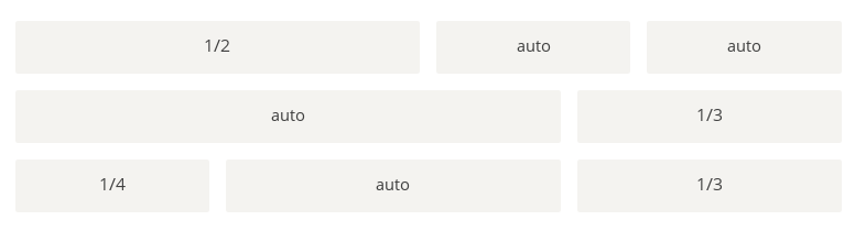 1 2 3 4 5<div class="Grid"> <div class="Grid-cell u-1of4">...</div> <div class="Grid-cell">...</div> <div class="Grid-cell u-1of3">...</div> </div>