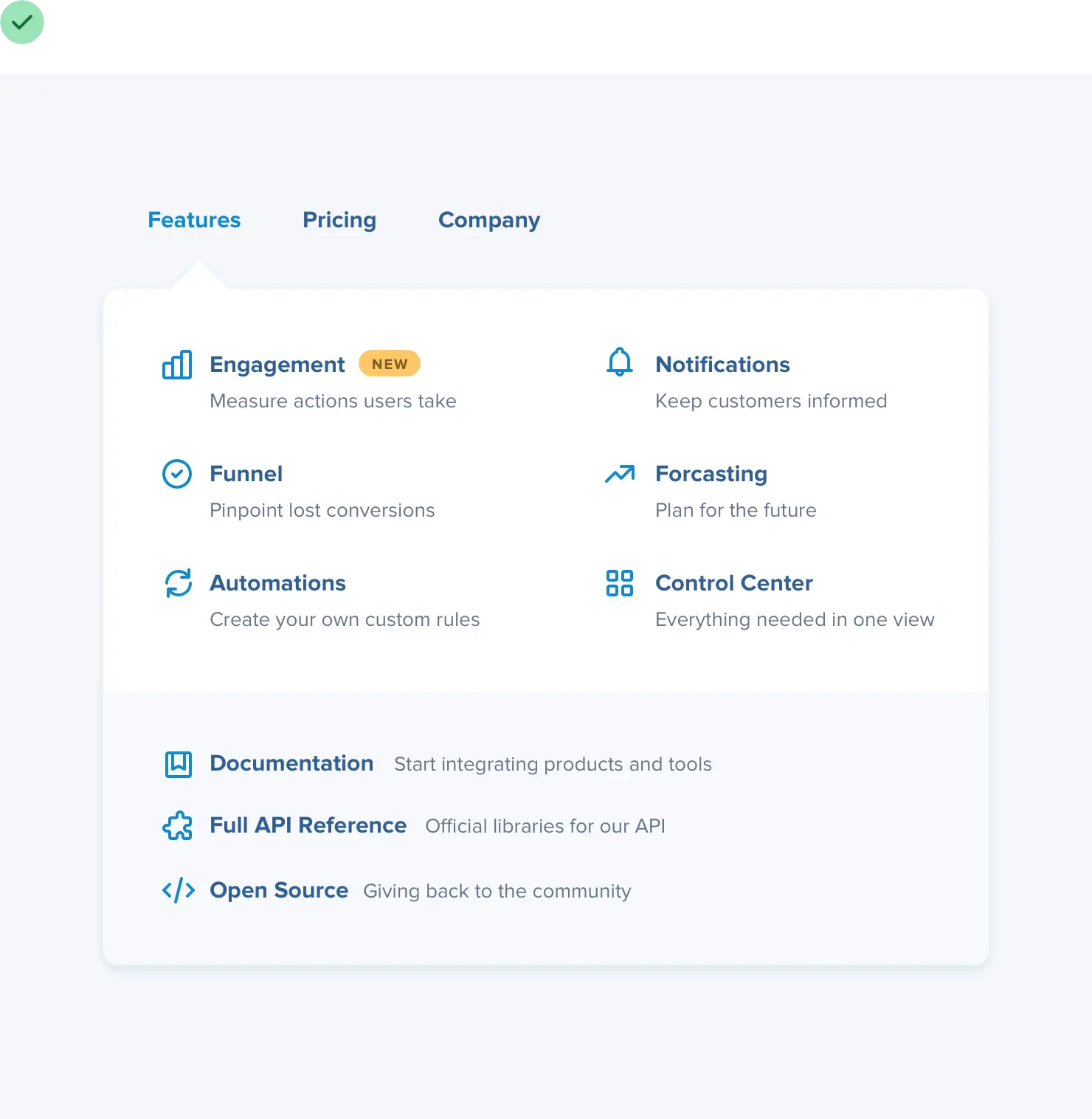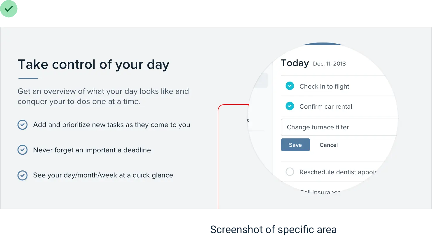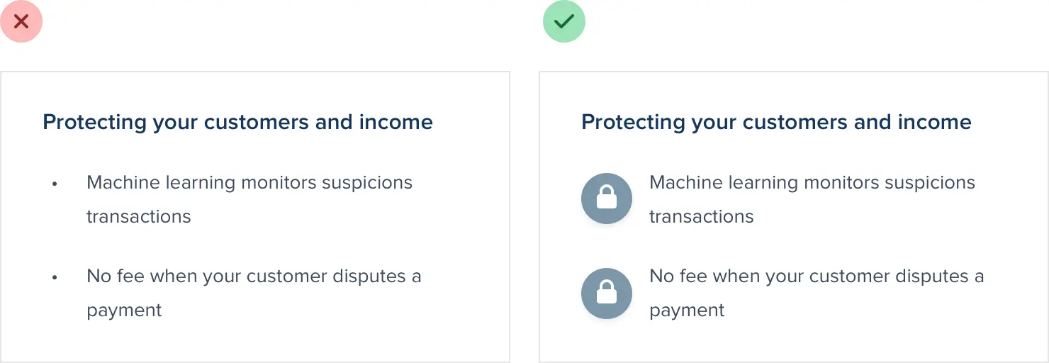 在很多情况下,复选标记和箭头是很好的通用选择,但您也可以使用更具体的内容,例如用于安全相关功能列表的挂锁图标: