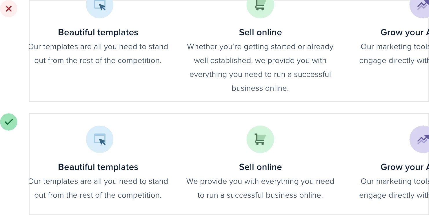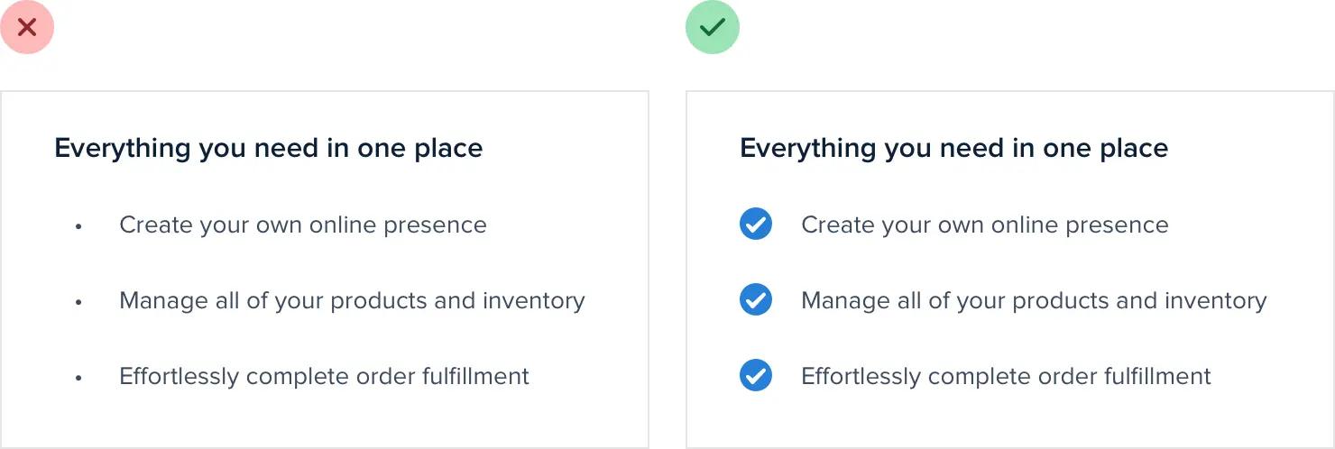 例如,如果您的设计包含项目符号列表,请尝试用图标替换项目符号: