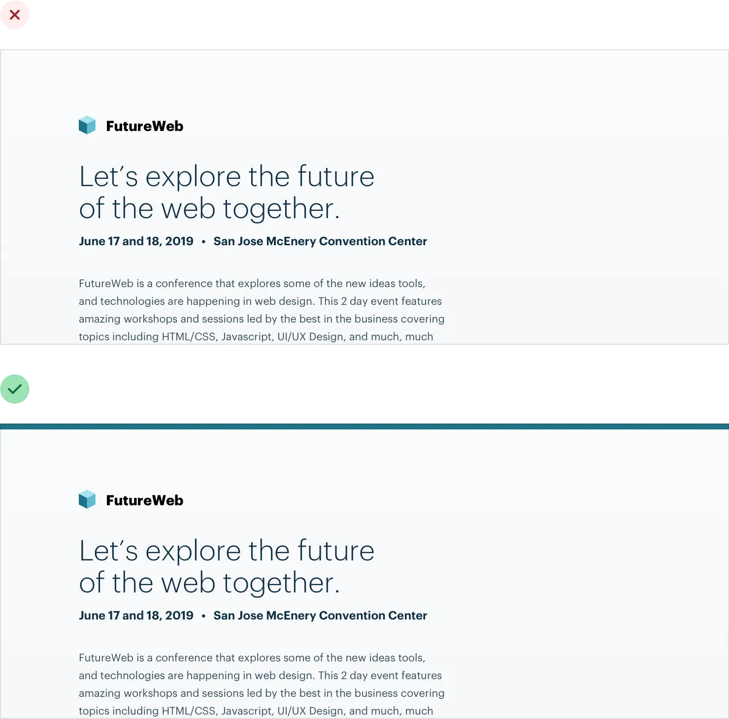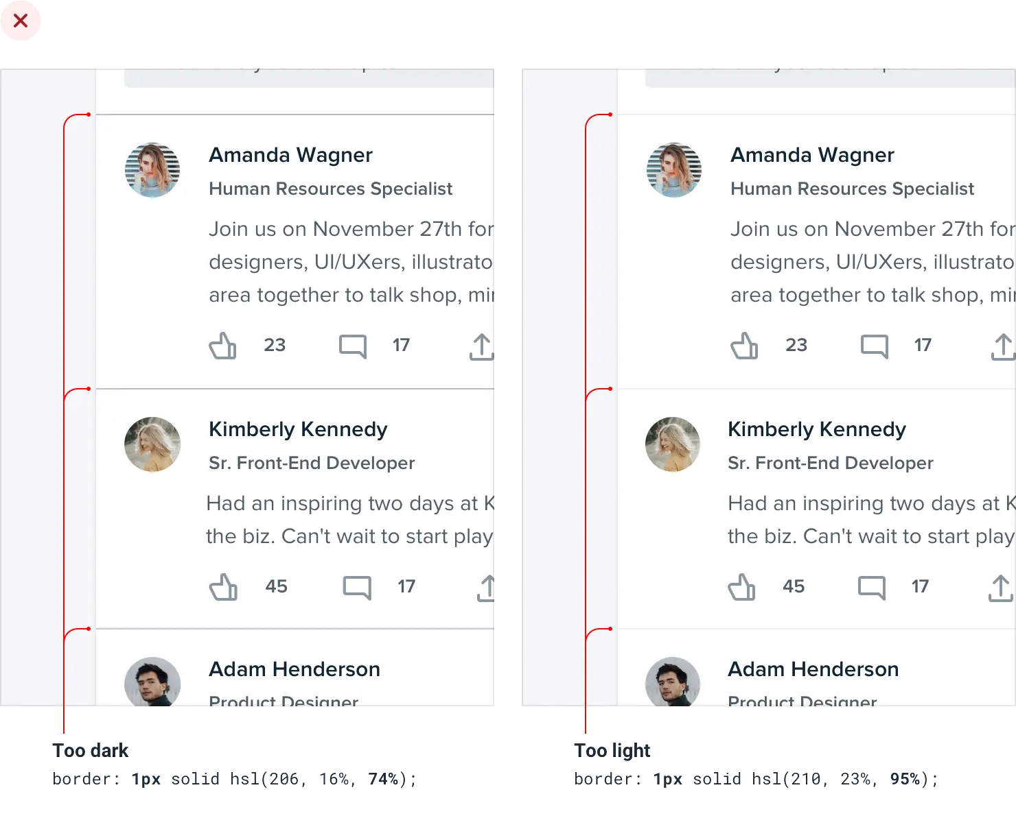 虽然边框是区分两个元素的好方法,但它们并不是唯一的方法,而且使用太多边框会使您的设计显得忙碌和混乱。