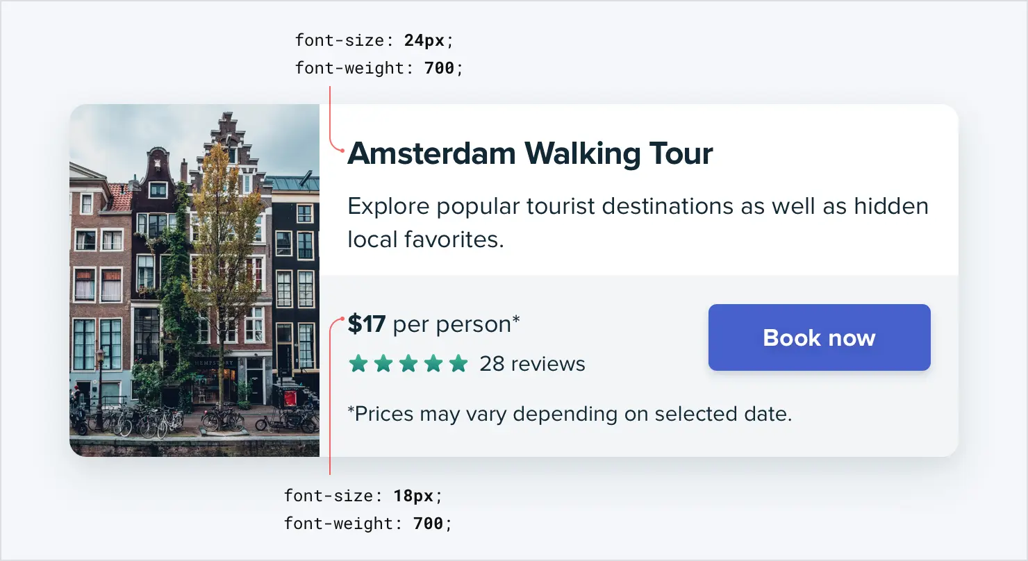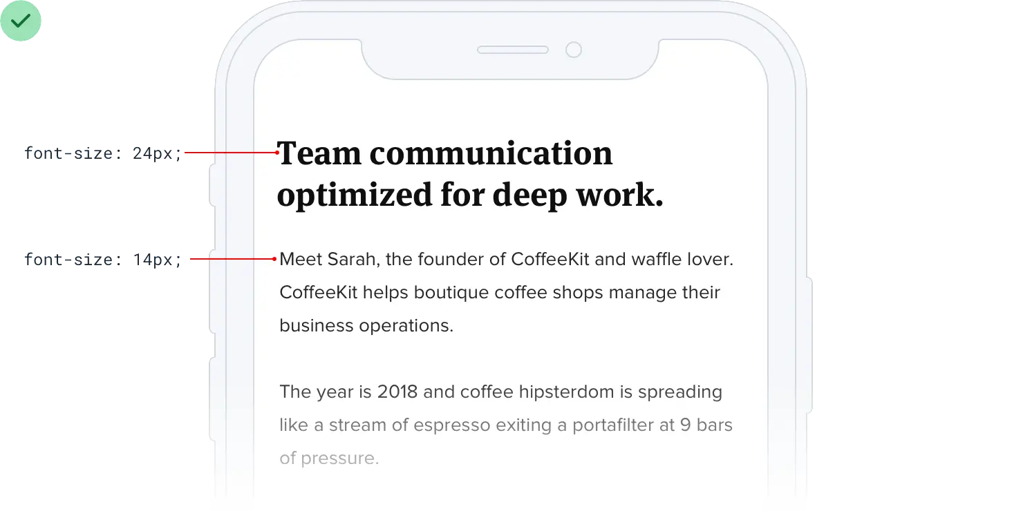 同样,不要一次调整一个像素的字体大小,直到它看起来完美为止。提前定义一个限制性的字体比例,并使用它来做出任何未来的字体大小决定。