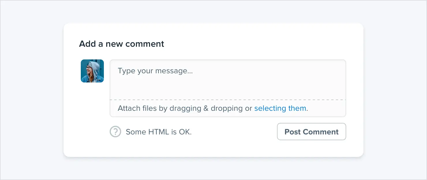 例如,假设您正在为项目管理工具开发评论系统。您知道有一天,您希望用户能够将文件附加到他们的评论中,因此您在设计中包含了一个附件部分。