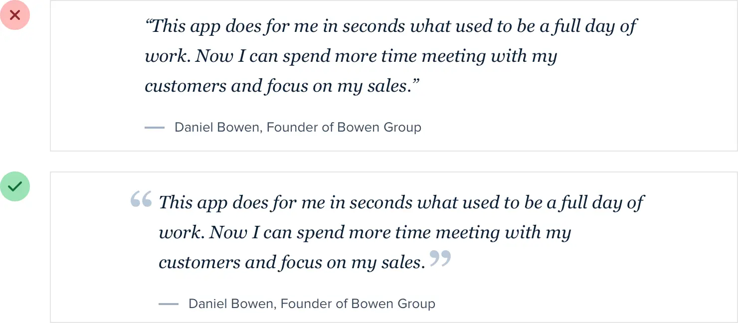 同样,如果您正在制作推荐书,请尝试通过增加尺寸和更改颜色将引语“提升”为视觉元素:
