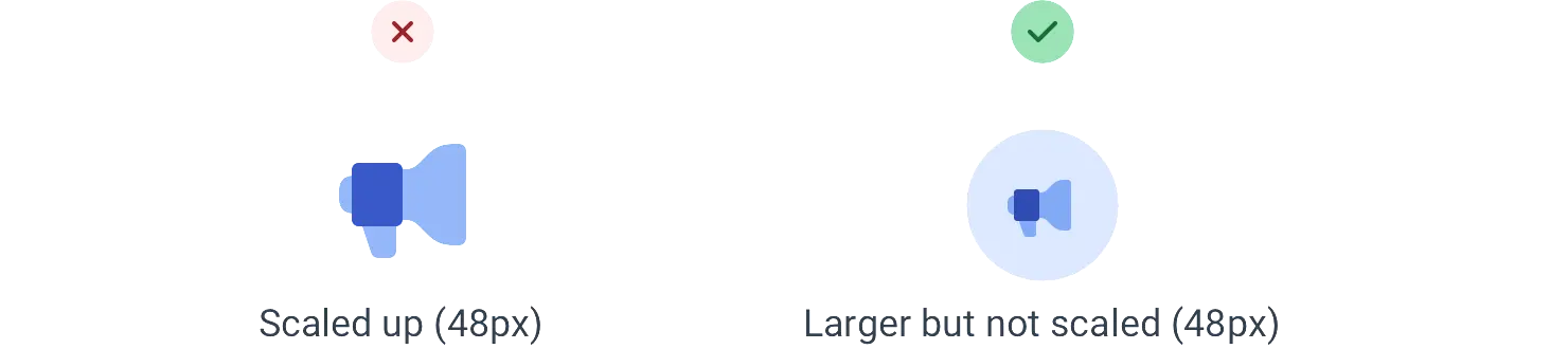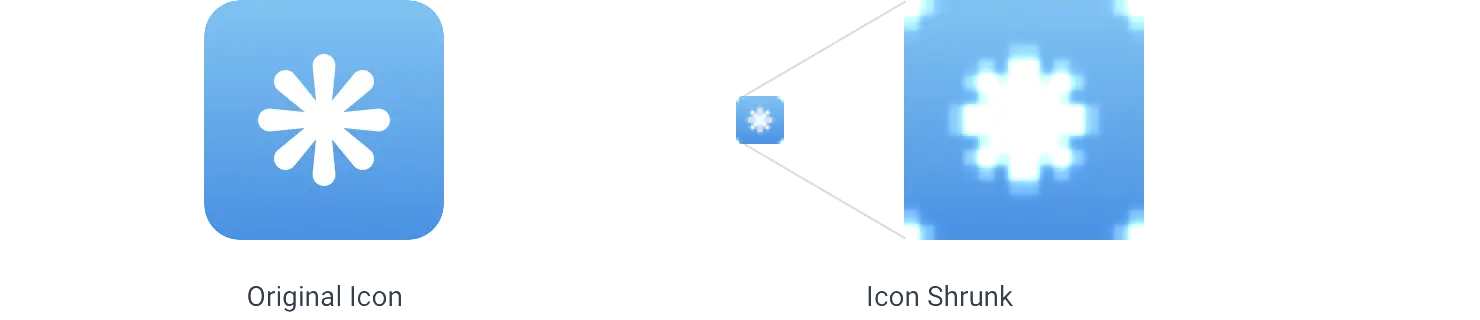 就像绘制用于 16px 的图标在放大时看起来很粗壮一样,用于更大尺寸的图标在缩小时看起来不规则和模糊。