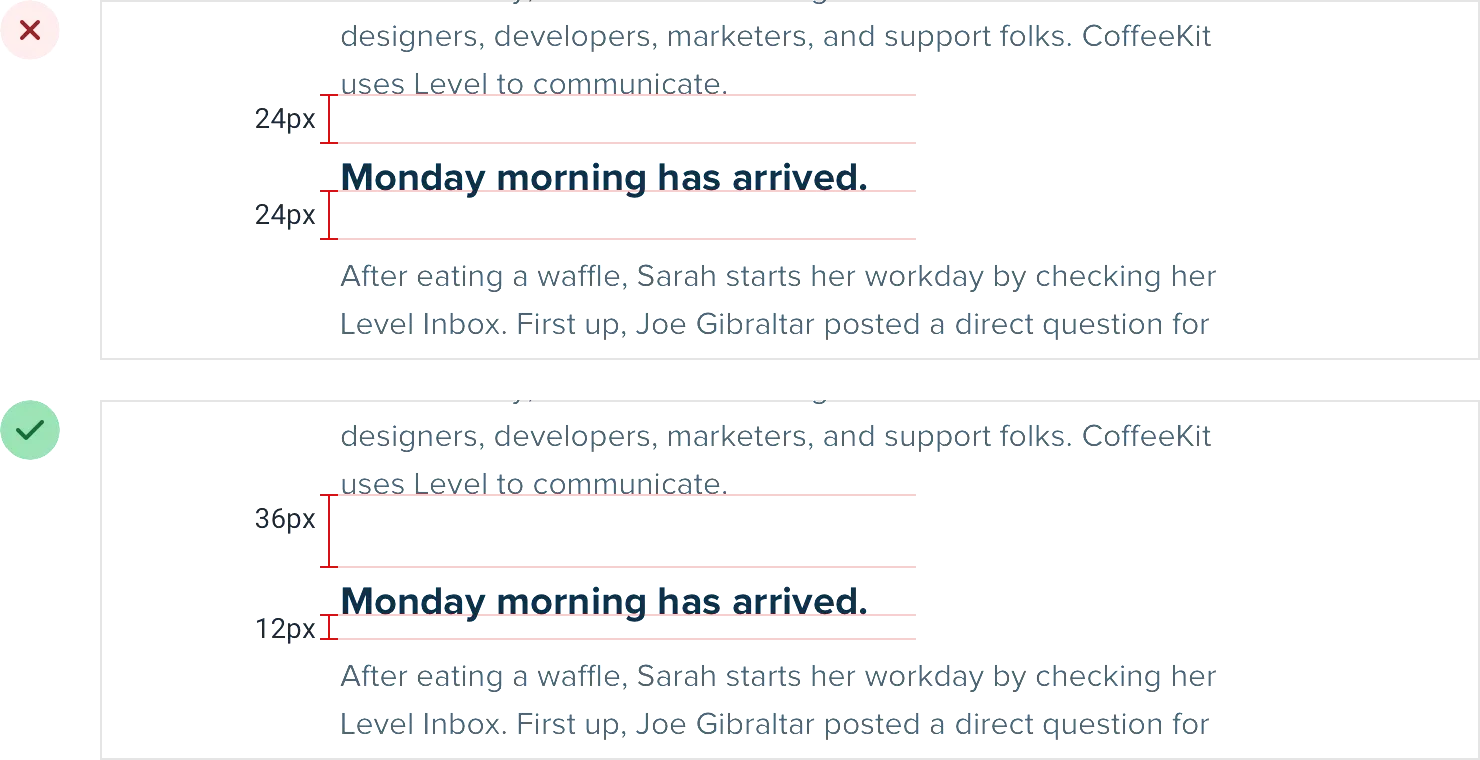 当你构建这样的规范时,你只需要做一次艰难的选择初始值的工作,而不是每次你设计一个新的用户界面时。前期的工作要多一些,但这是值得的——它会为你省去大量的决策疲劳。