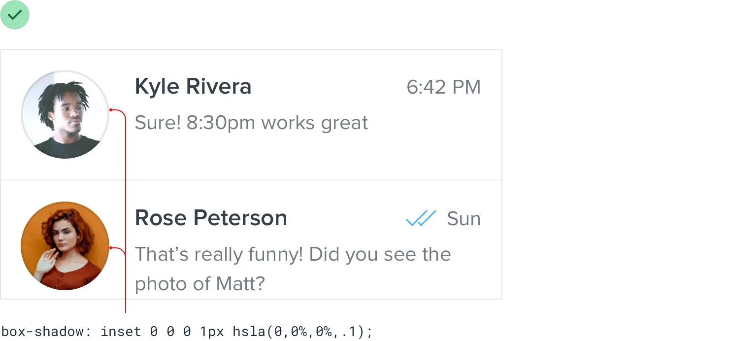 如果你不喜欢使用方框阴影时出现的轻微“嵌入”效果,半透明的内边框也很不错。