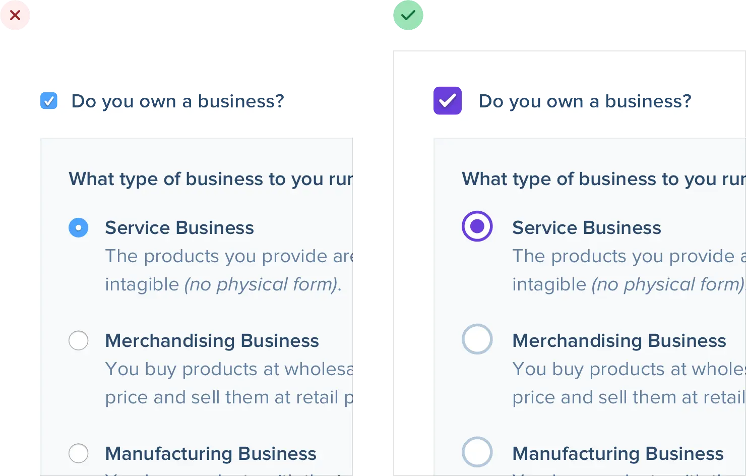 如果一组单选按钮是您正在设计的用户界面的重要组成部分,请尝试使用可选卡片之类的东西: