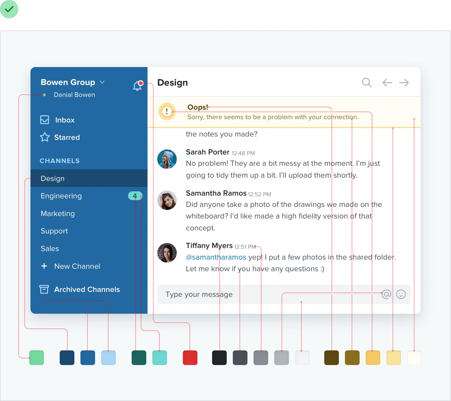 每次需要选择新的蓝色阴影时,不要伸手去拿颜色选择器——从提前挑选的一组 8-10 种颜色中选择。