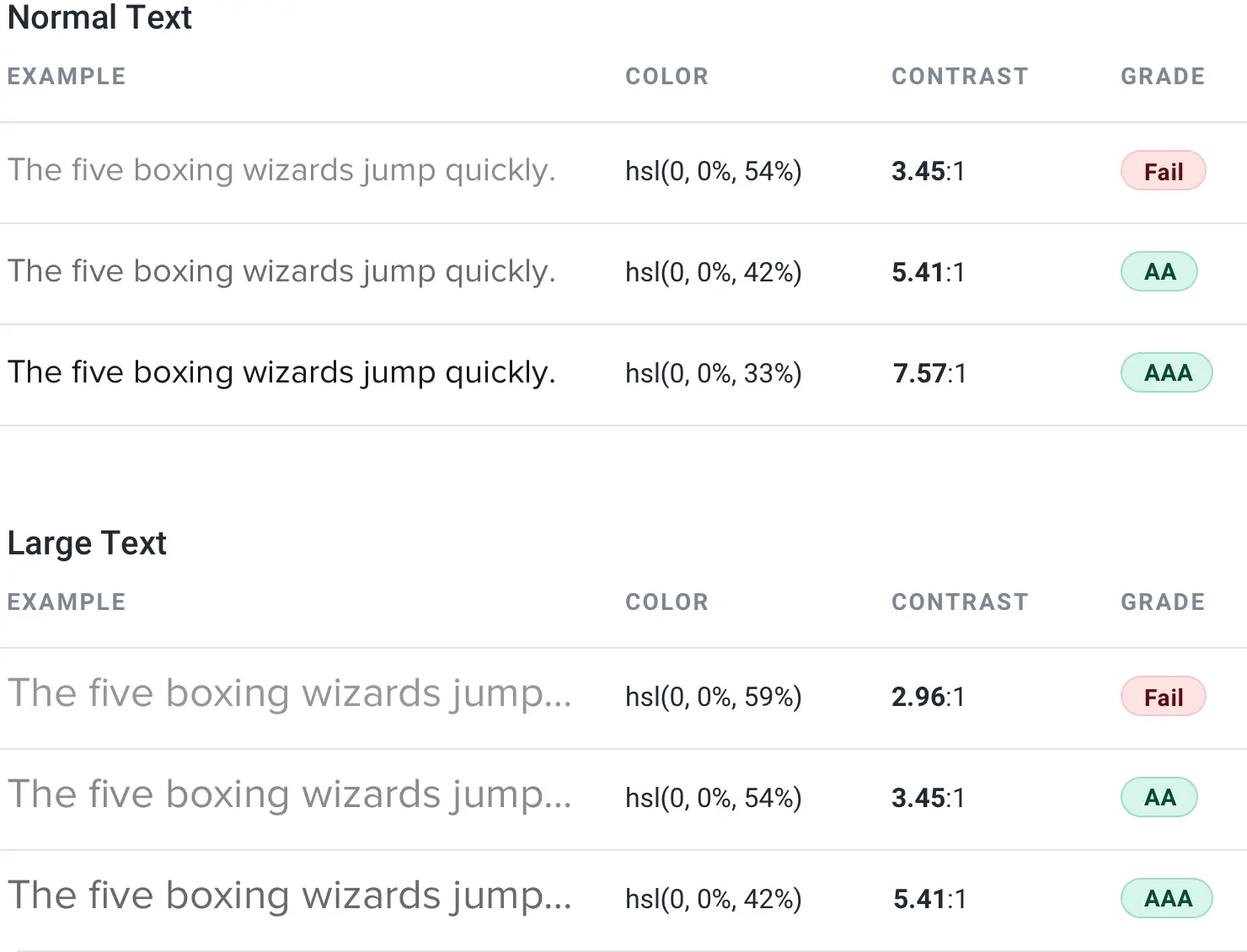 通过灰度设计,你不得不使用间距、对比度和大小来完成所有繁重的工作。