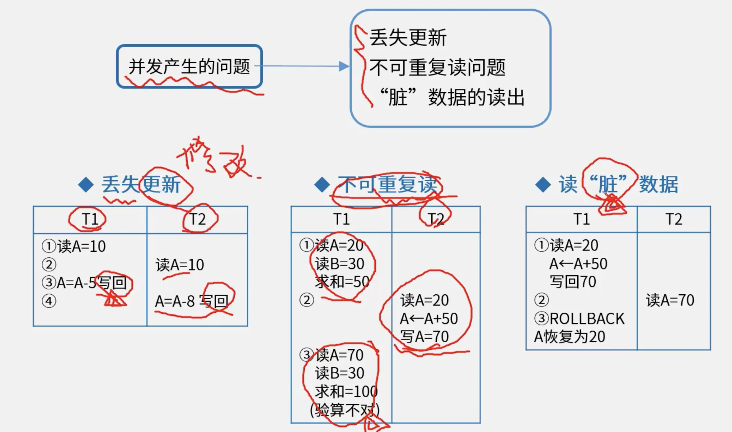 数据冗余:,每条记录都含有相同信息;删除异常:删除所有学生成绩,就把课程信息全删除了;插入异常:学生未选课,无法记录进数据库;更新异常:调整课程学分,所有行都调整。