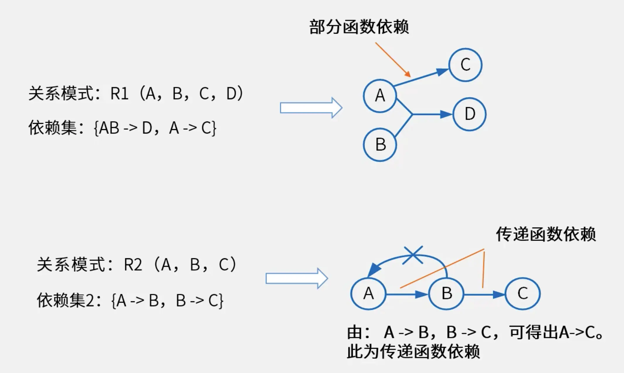 如果一个关系属于第二范式,并且在两个(或多个)非主键属性之间不存在函数依赖。(非主键属性之间的函数依赖也称为传递依赖),那么这个关系属于第三范式。