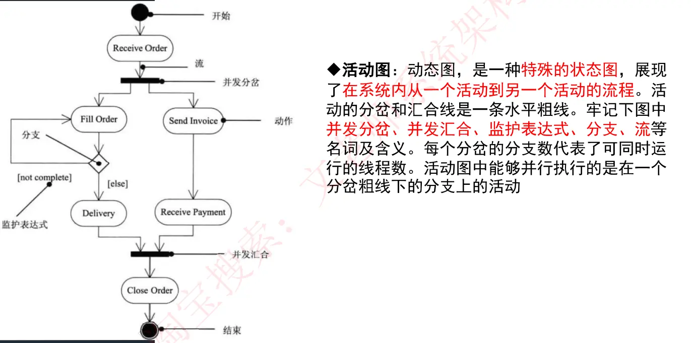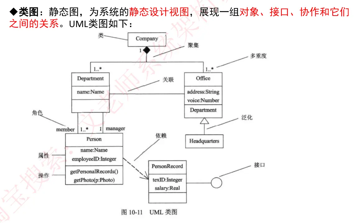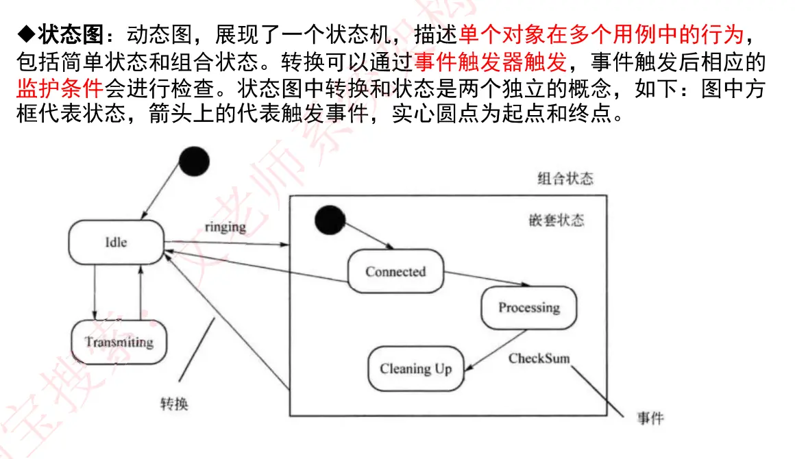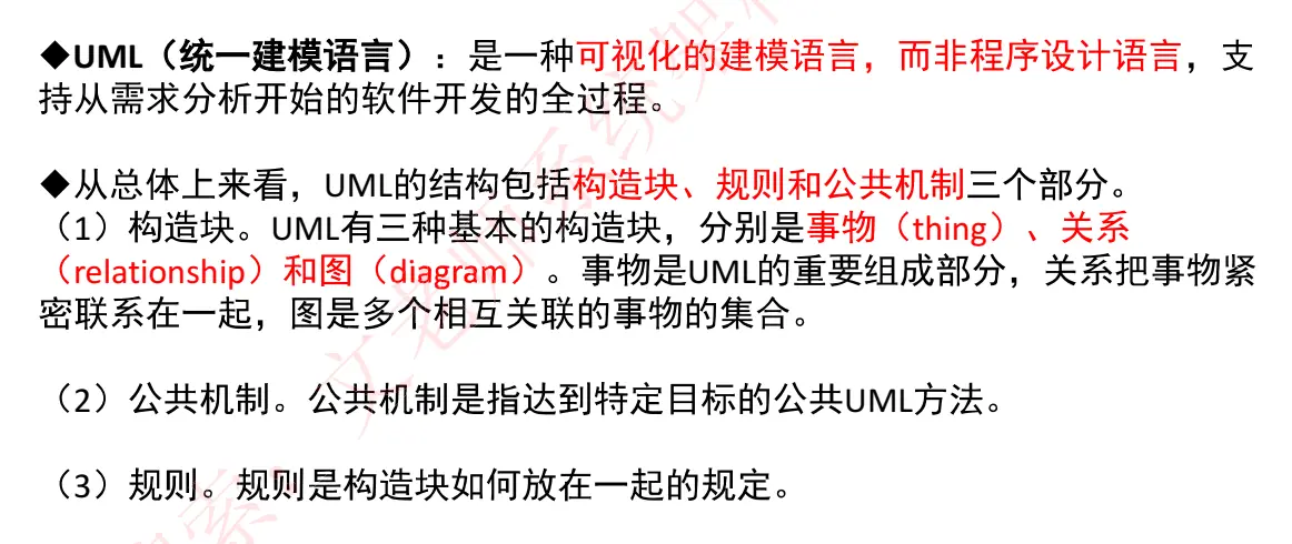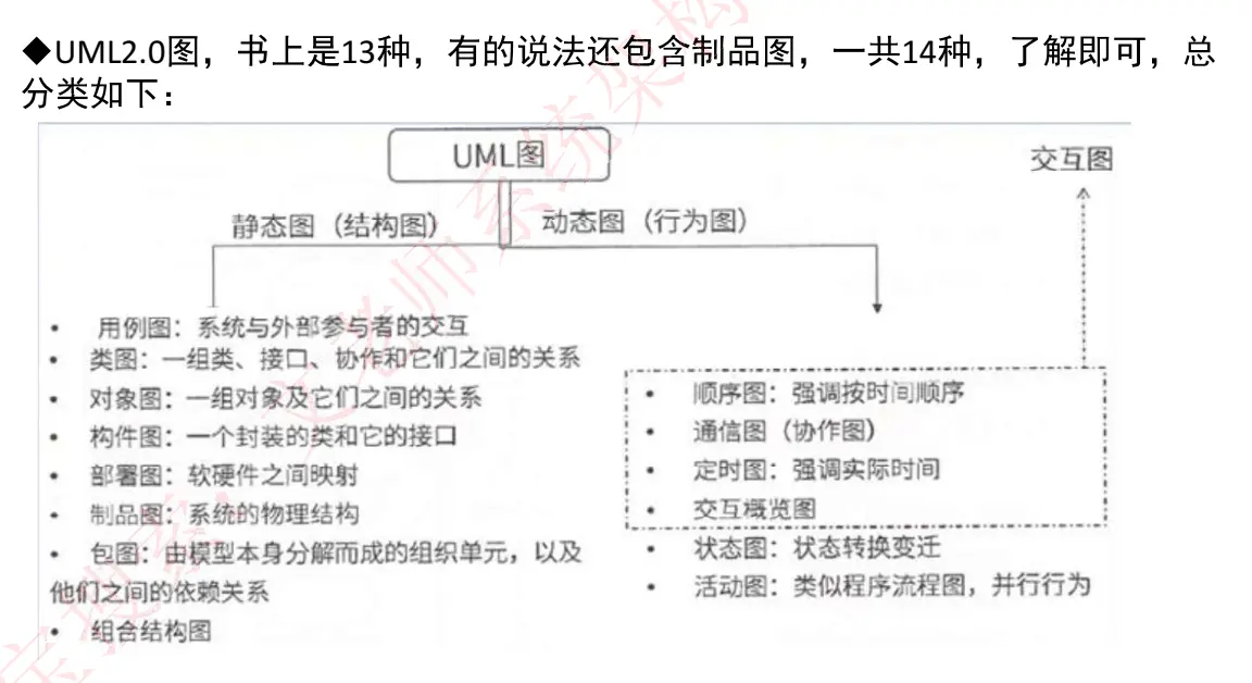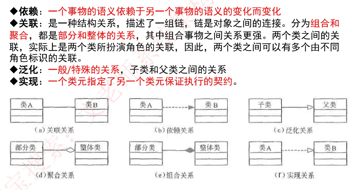 - 考察 UML 各个图的定义:红色部分定义背一下。