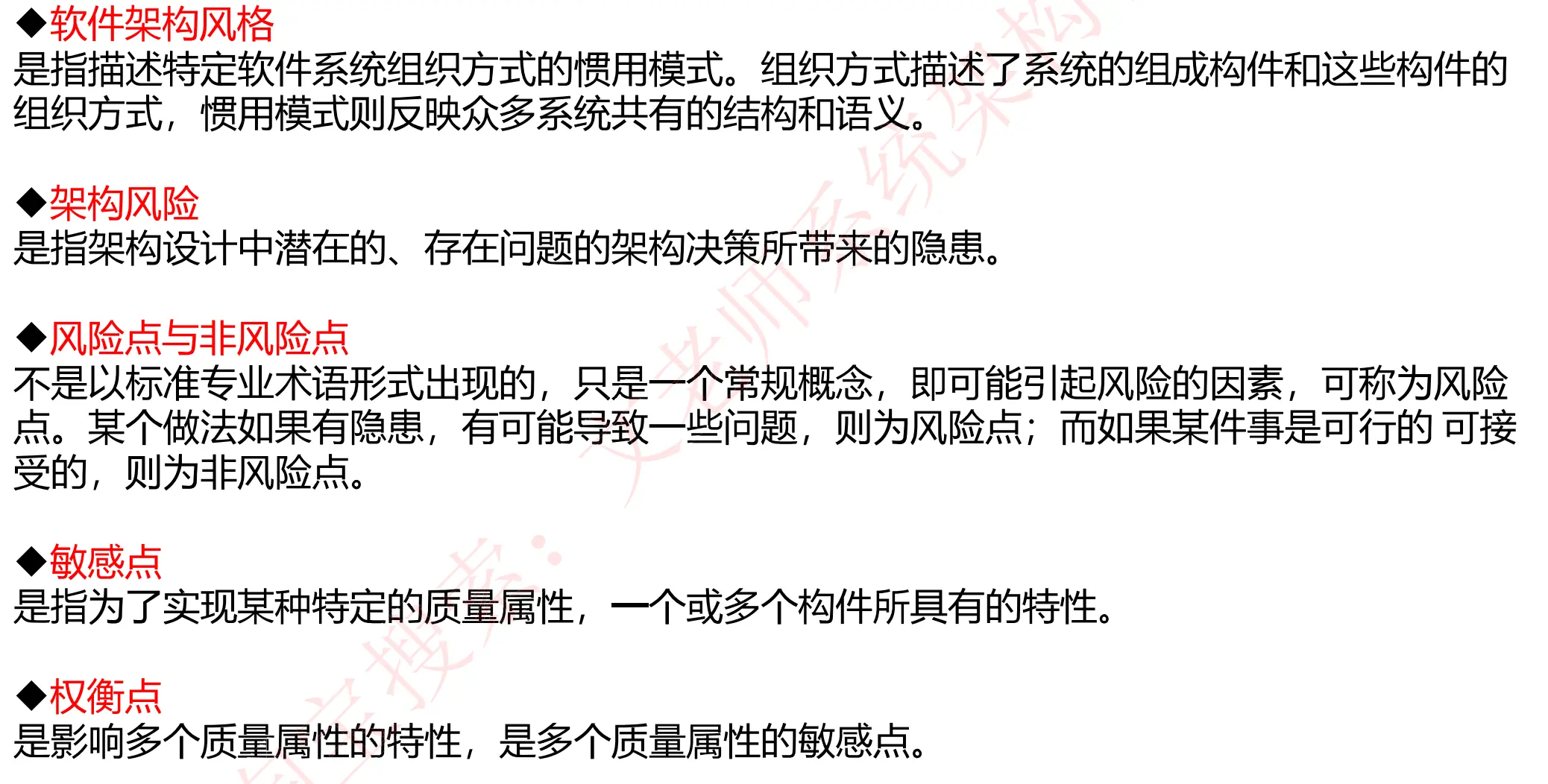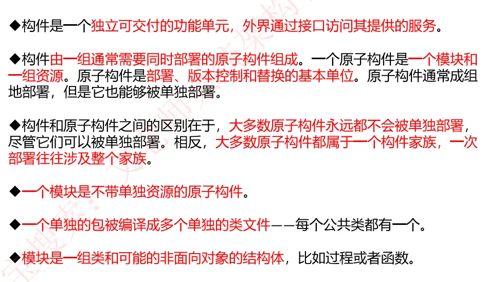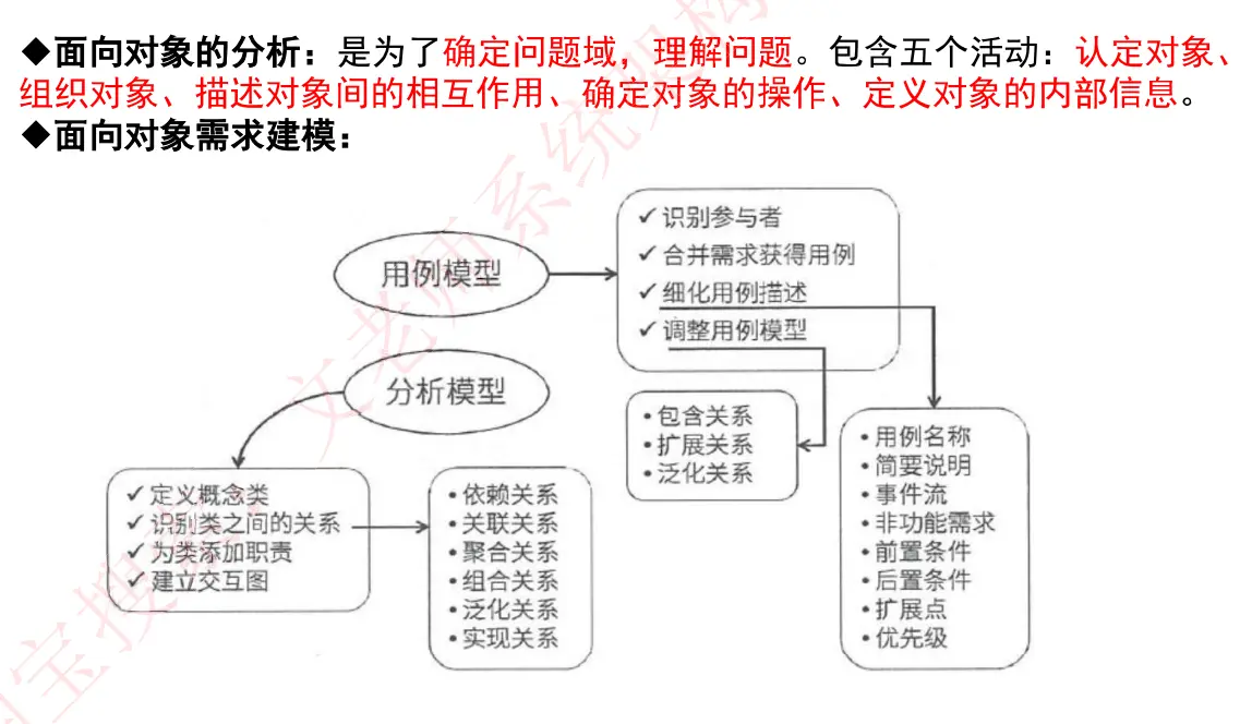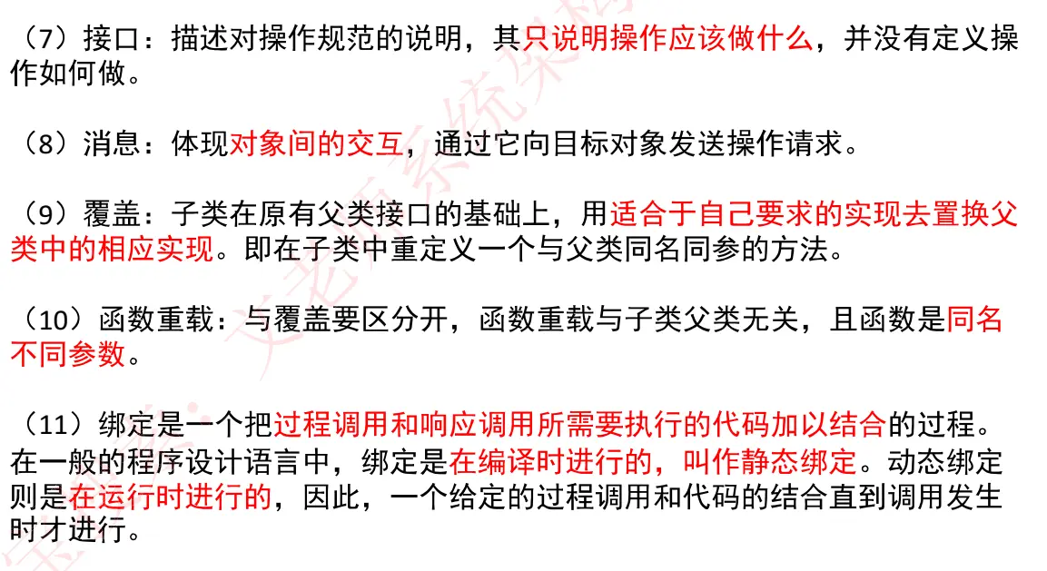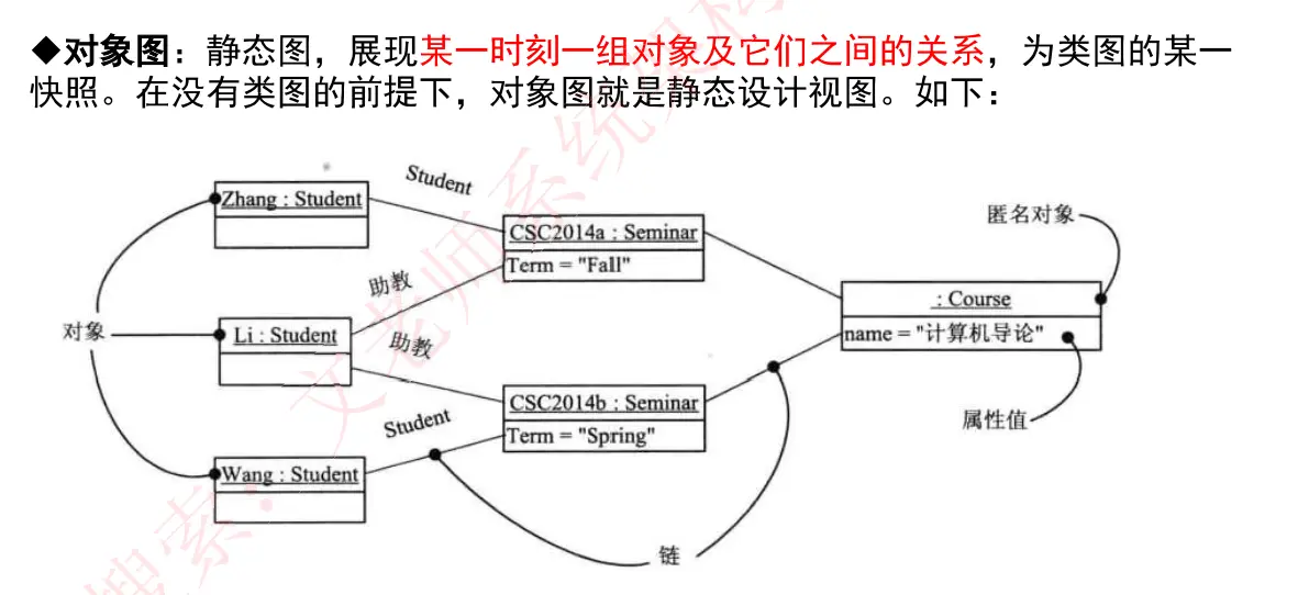 - 考察 UML 各个图的定义:红色部分定义背一下。