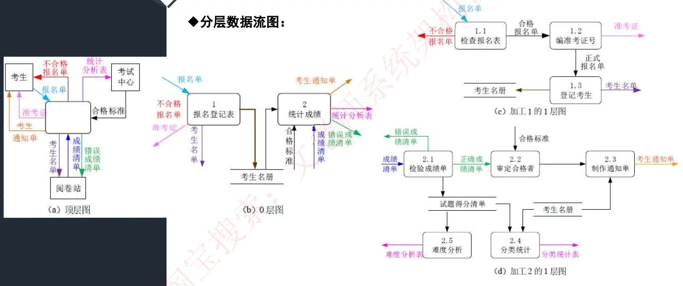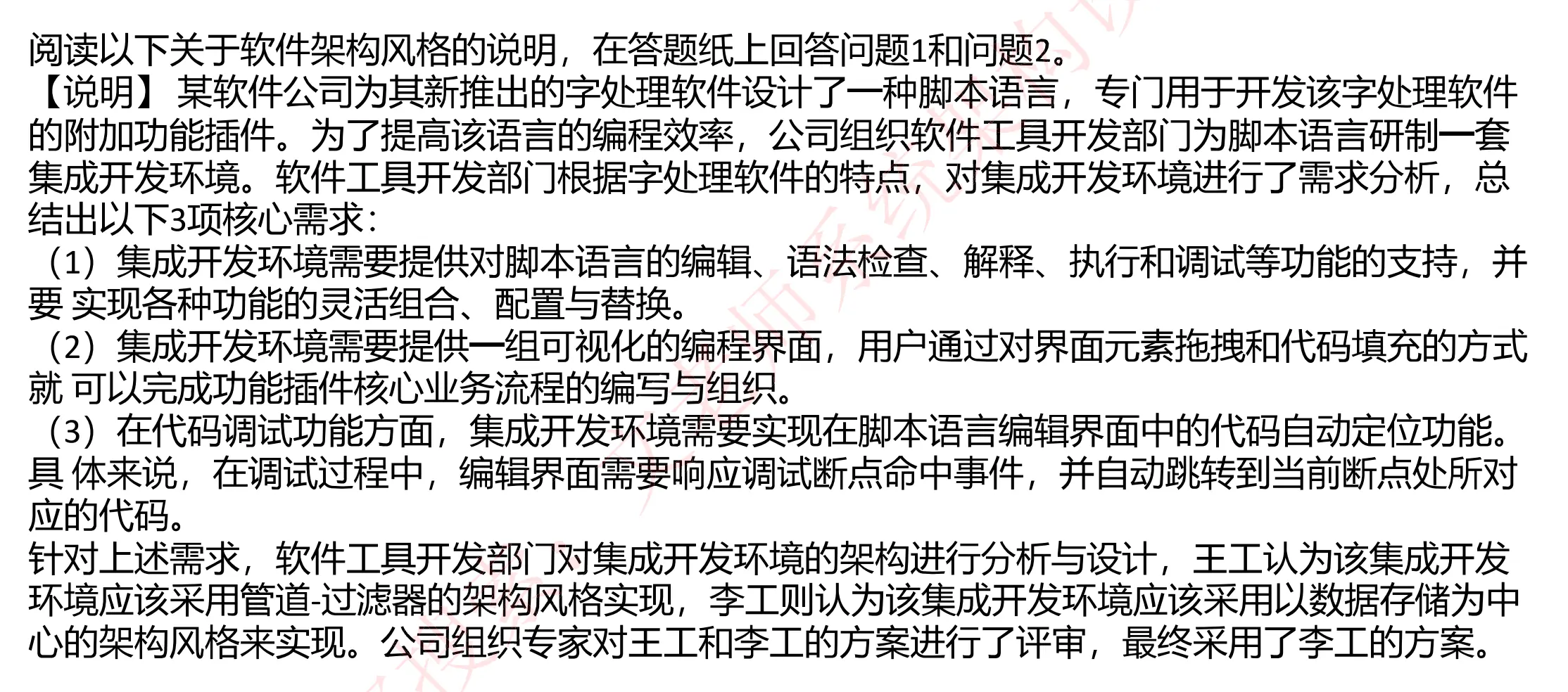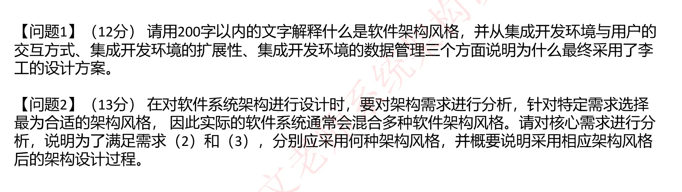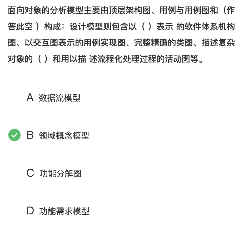 - 给定主要功能描述,看图填空补充用例图:送分题,排除法。