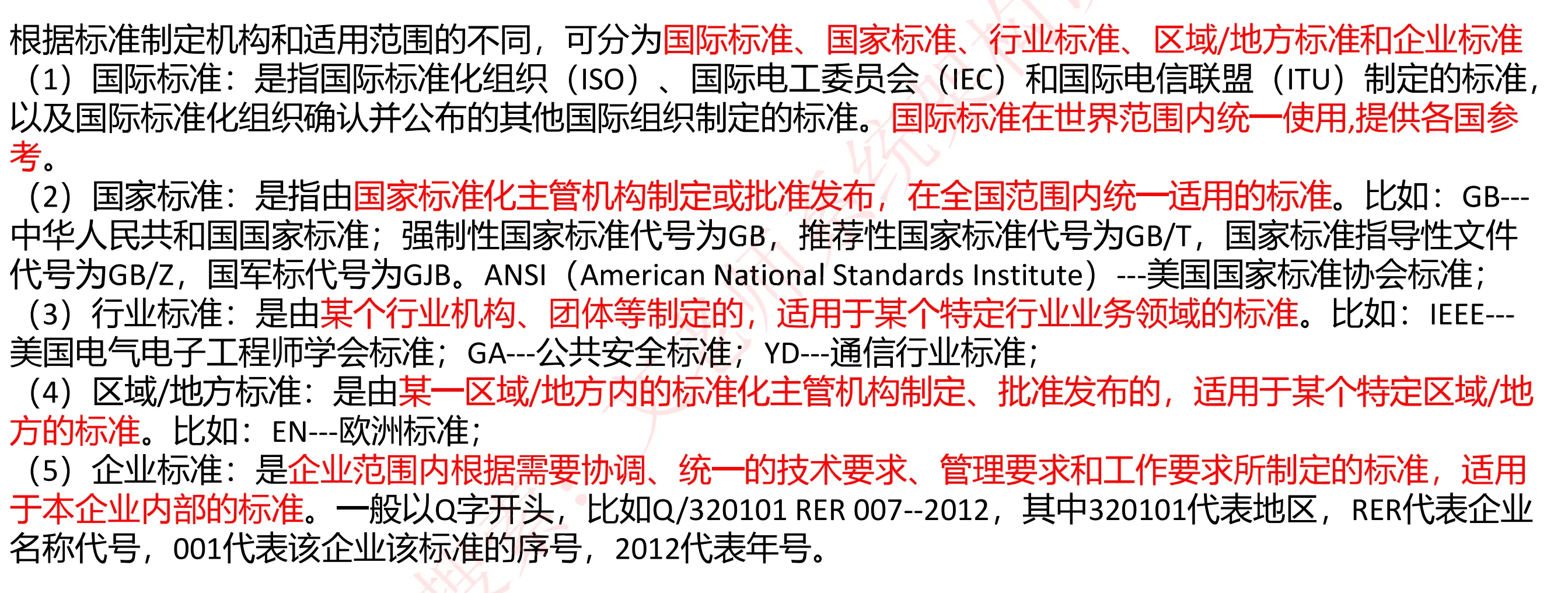 5.6 标准划分:国际标准、国家标准、行业标准、区域/地方标准、企业标准