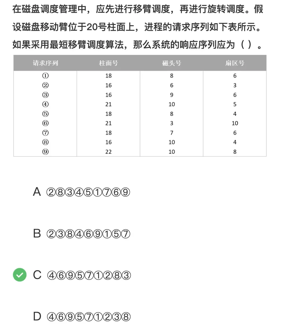- 2022 求磁盘调度的响应序列: 按照采用的调度算法,来求序列,多个相同柱面号的情况下,扇区号由小到大排列,磁头号是无效信息。