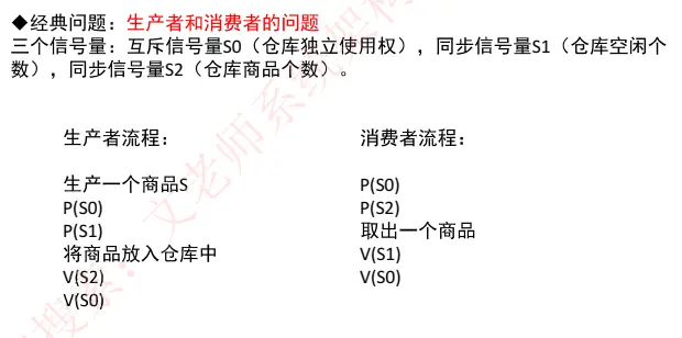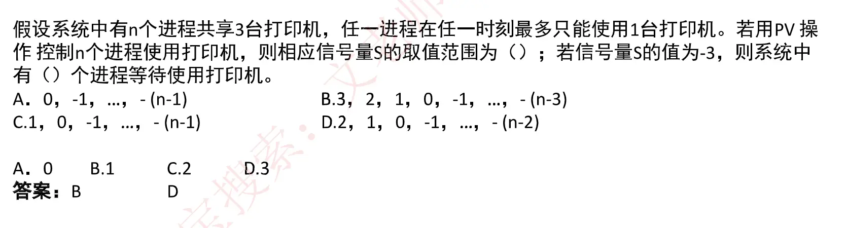 - 求信号量的取值范围: 给定进程数和资源数,求使用 PV 操作时需要设定的信号量的范围,带入公式计算,信号量为负几,则有几个等待进程。