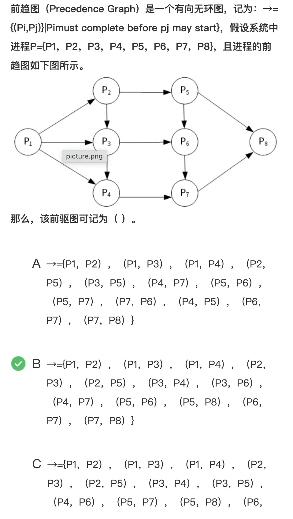 - 考察前趋图,给定前趋图,求可标记为。从开始节点开始读,排除错误答案即可,很简单。