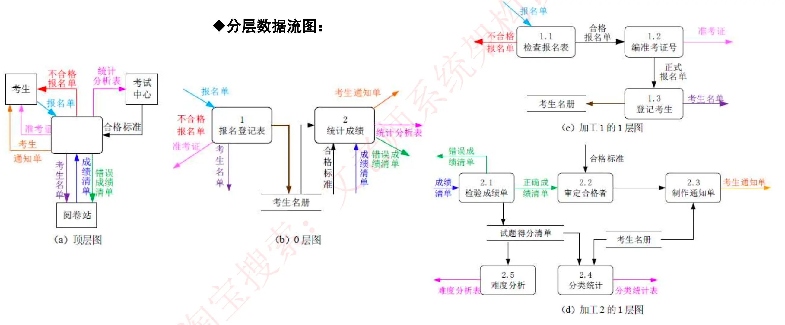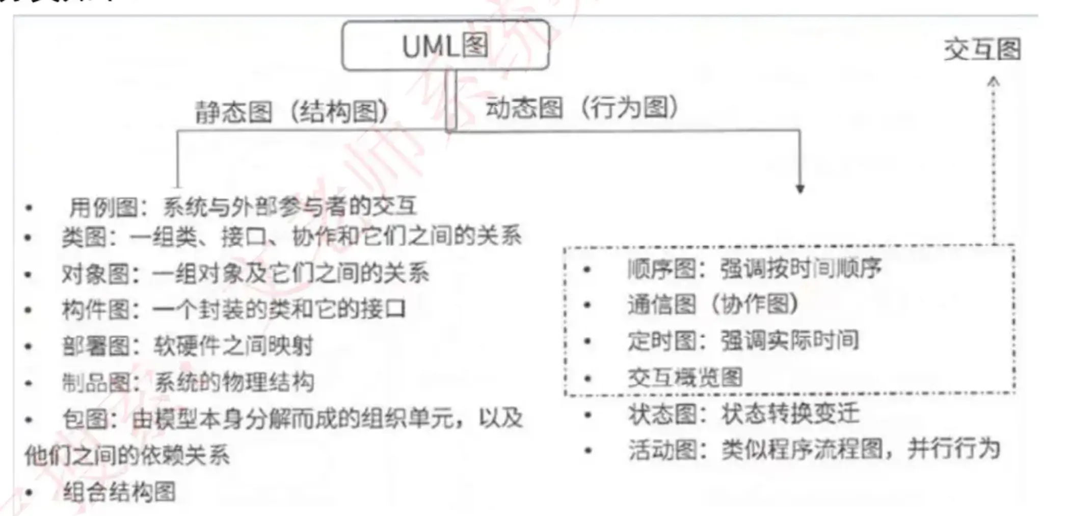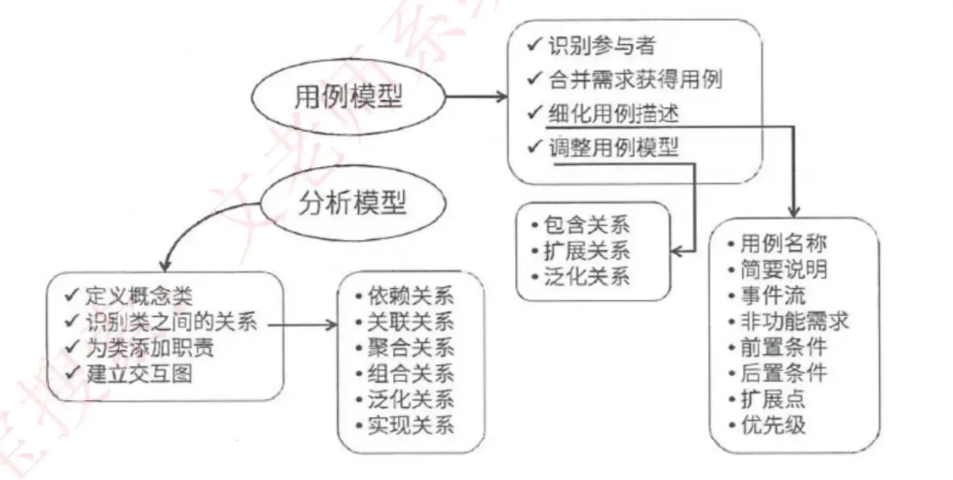 - 三大模型及数据字典:功能模型(数据流图)、行为模型(状态转换图)、数据模型(E-R 图)