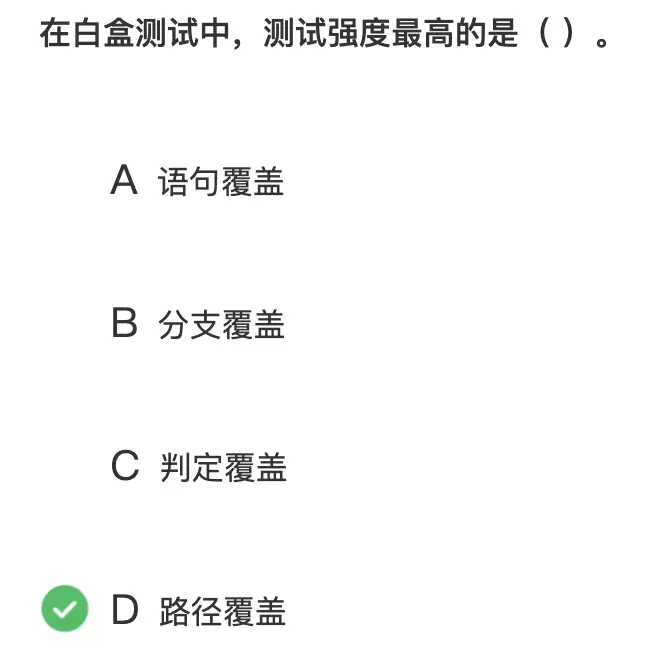 - 考察白盒测试覆盖级别