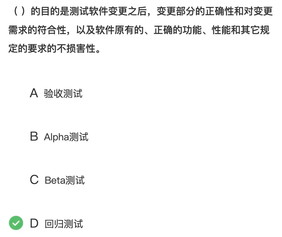 测试目的是测试软件变更之后,变更部分的正确性和对变更需求的符合性,以及软件原有的、正确的功能、性能和其他规定的要求的不损害性。