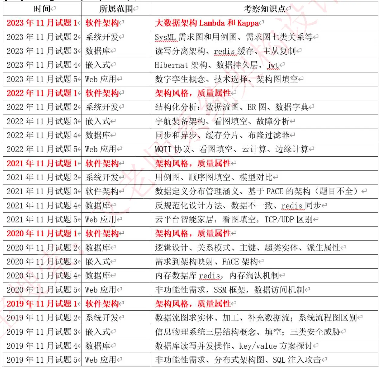 2020 开始就有关于新版教材下篇八大架构的题目了,当时是超纲的(微服务架构、云原生架构、安全架构)。