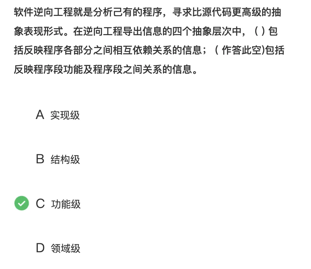 - 考察逆向工程的四个级别的定义
