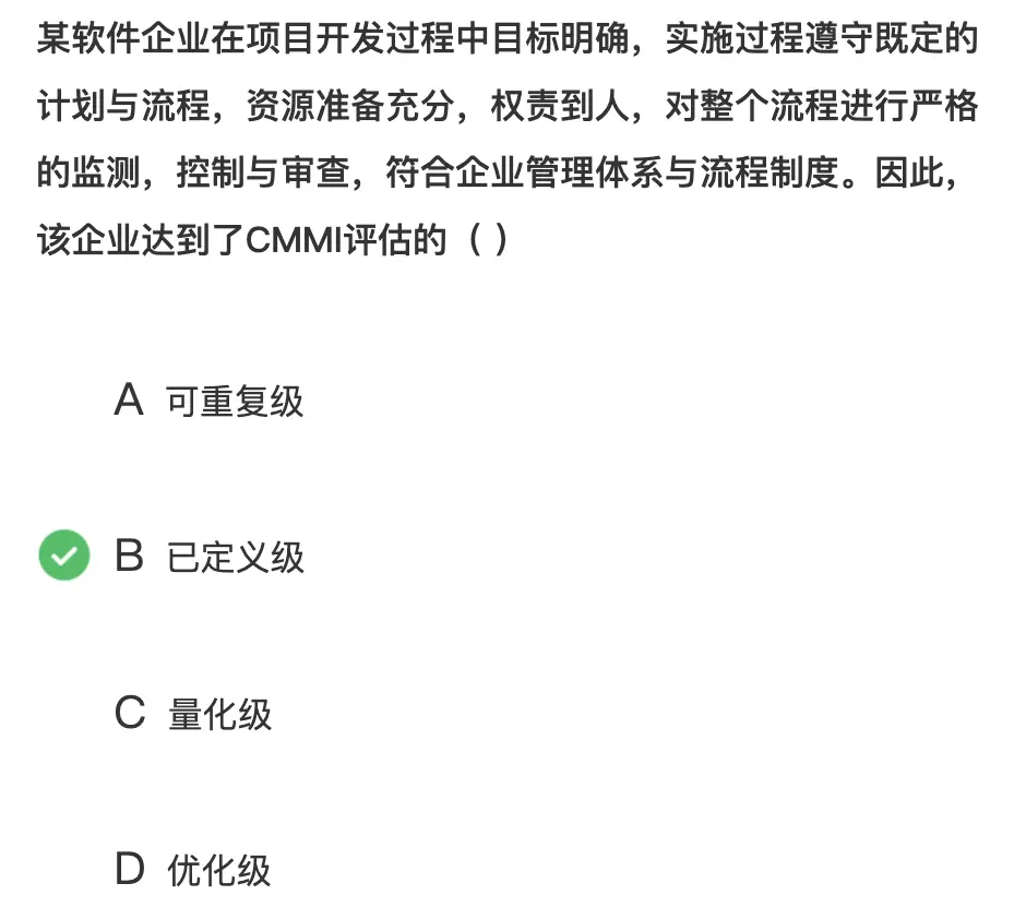 - 考察到了 CMMI 的哪一级的成熟度
