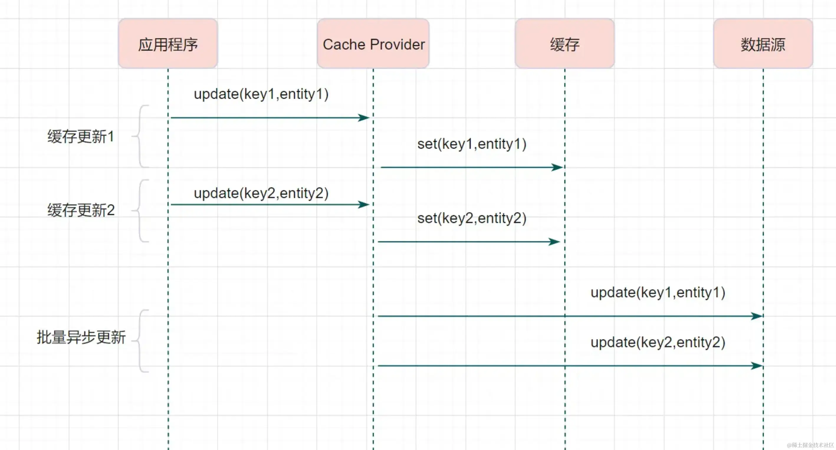 其实删除缓存,而不是更新缓存,就是一个 lazy 计算的思想,不要每次都重新做复杂的计算,不管它会不会用到,而是让它到需要被使用的时候再重新计算。像 mybatis,hibernate,都有懒加载思想。查询一个部门,部门带了一个员工的 list,没有必要说每次查询部门,都里面的 1000 个员工的数据也同时查出来啊。80% 的情况,查这个部门,就只是要访问这个部门的信息就可以了。先查部门,同时要访问里面的员工,那么这个时候只有在你要访问里面的员工的时候,才会去数据库里面查询 1000 个员工。