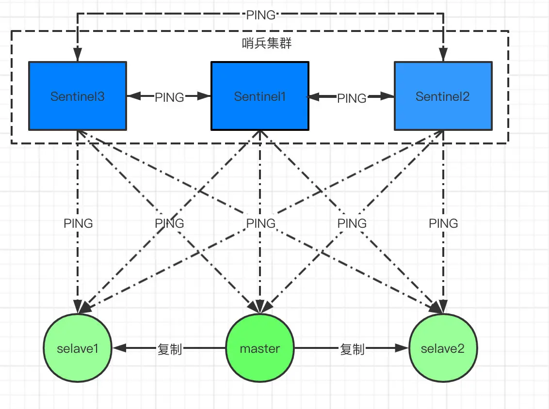 - Sentinel 会不断的检查 主服务器 和 从服务器 是否正常运行。当被监控的某个 Redis 服务器出现问题,Sentinel 通过 API 脚本向管理员或者其他的应用程序发送通知。